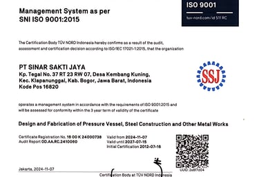 The management and all employees of PT Sinar Sakti Jaya are committed to completing every project in accordance with customer specifications by ensuring consistent product quality, competitive pricing, and timely project completion.